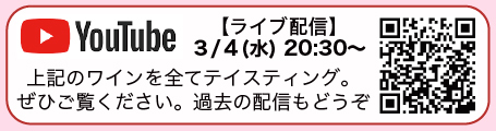3月4日(水)の20:30より、今月のオススメワイン8種類をご紹介するYouTube生配信を致します♪ 視聴者特典もあります!
